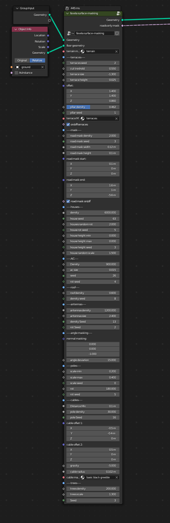 Geometry Nodes based system that takes a plane or whatever mesh you want and turns it in a crumpled yet nice looking favela for Blender 3.2